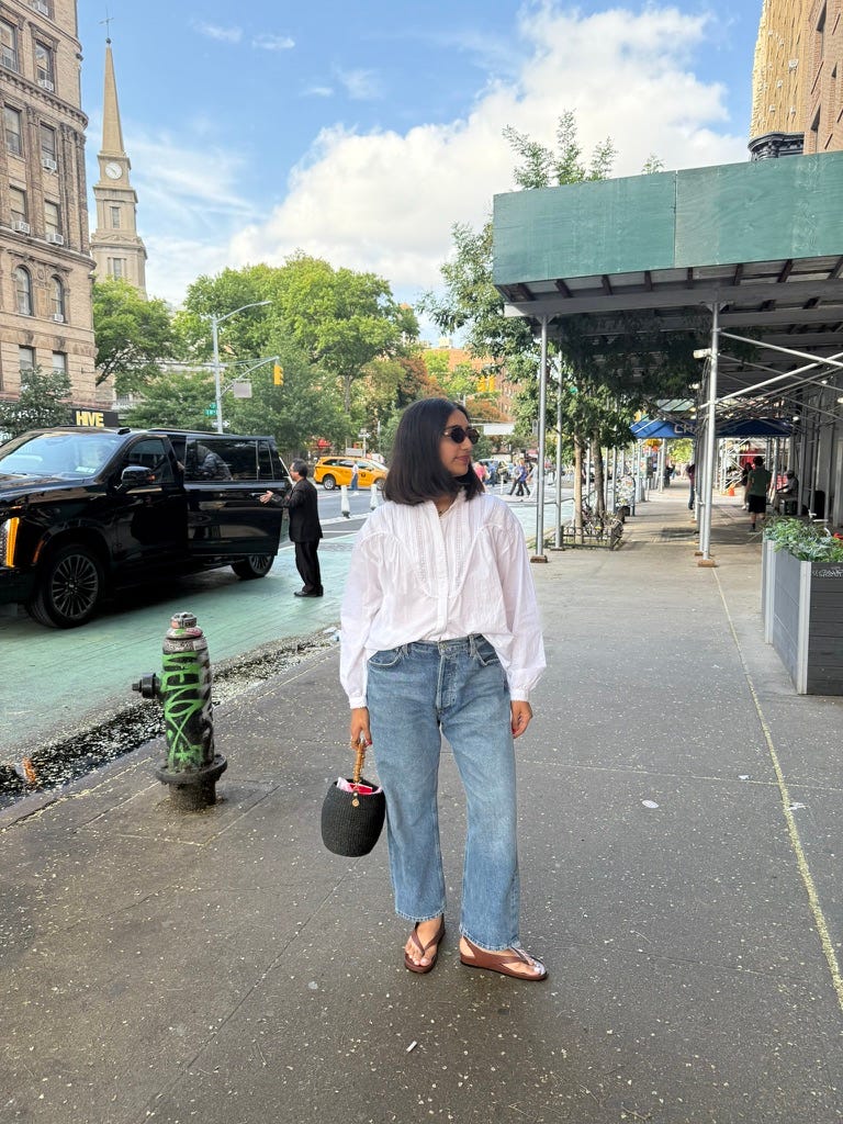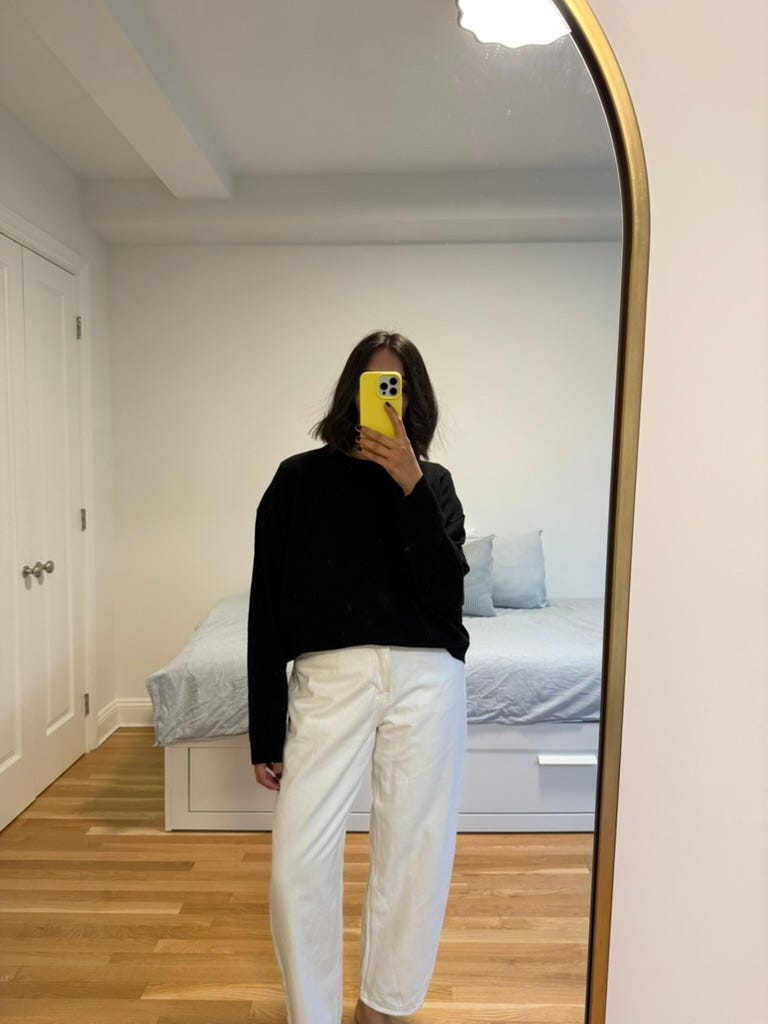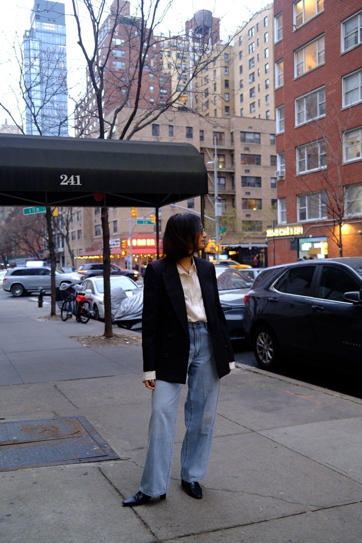 I am a denim girl. If I could wear jeans every day, I would. I can usually glance at a pair and know immediately whether they’ll work for me. At this point, it’s instinct. My current favorite cuts are a classic straight leg and a subtle balloon. And while rumors of the balloon silhouette’s demise continue to circulate, I’m not letting it go just yet. The key, for me, is restraint—less exaggerated, more refined.
